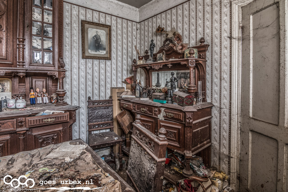 Een huisje waarbij bij mij de haren omhoog gingen staan toen ik binnen kwam. Het was er smoezelig, goor en behoorlijk vol in de gangen en slaapkamers boven. Mijn vermoeden was dat de laatste bewoner een oud mannetje was, aangezien de slaapkamer boven van een vrouw was en het leek wel een bedevaartsplek. Alles zag er 'schoner' uit met in de hoek naast het bed een kastje met mariabeeldje en een kruis. Er gaat best wat door je heen als je daar staat en je gedachten er op los laat. Beneden was de gang vol met bende, opgestapeld tot het plafond zodat het moeizaam was om naar de woonkamer te komen, die nog eens behoorlijk vol stond met meubels waardoor je je kont amper kon keren. Een hele uitdaging dus om alles vast leggen, maar had dit huisje zeker niet willen missen.