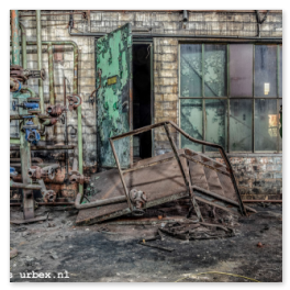 Een grote industriƫle omgeving met watertoren. Het is was veel loop en klimwerk om ongezien op dit terrein te komen. Een uitdaging want je moest klimmen en langs scheermessendraad gaan maar het is ons gelukt zonder kleerscheuren of verwondingen op te lopen. Eenmaal op het terrein ging ik los, er was gewoon zoveel te zien!
