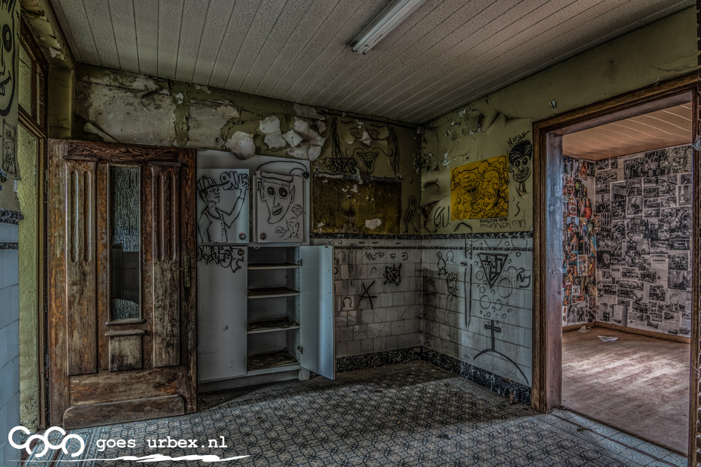 Een leeg huis waar ik normaal niet eens de moeite voor neem om mijn fototoestel uit mijn auto te pakken maar heb dit toch maar gedaan. Dit huis had toch weer iets speciaals. Het was leeg maar door het huis heen waren kunstzinnige muurtekeningen gemaakt maar ook een kamer vol collages van krantenknipsels. Ook schaduwen van diverse meubels waren te vinden, best grappig eigenlijk. Dus het loonde toch met een leuke serie foto's.