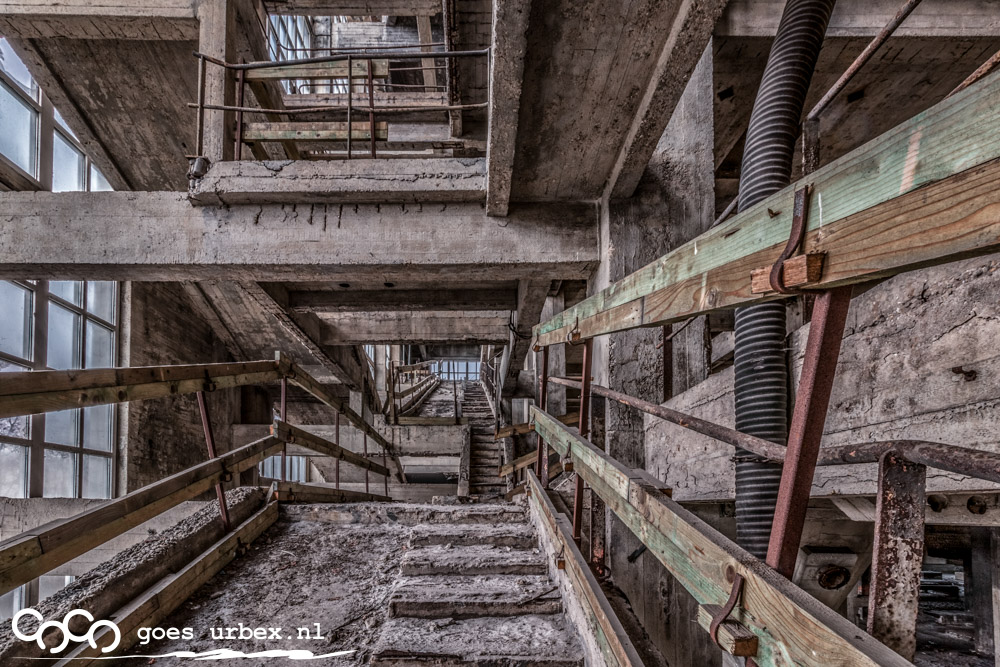 Ik snap heel goed waarom dit pand "huis van Escher" genoemd is. Wat een trappetjes en een lijnen overal! Deze locatie had wel van alles een beetje, machines, decay, gangetjes...Ik houd er van!