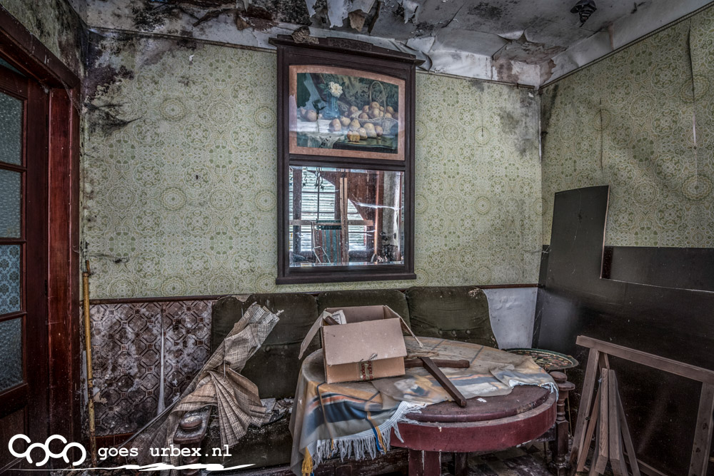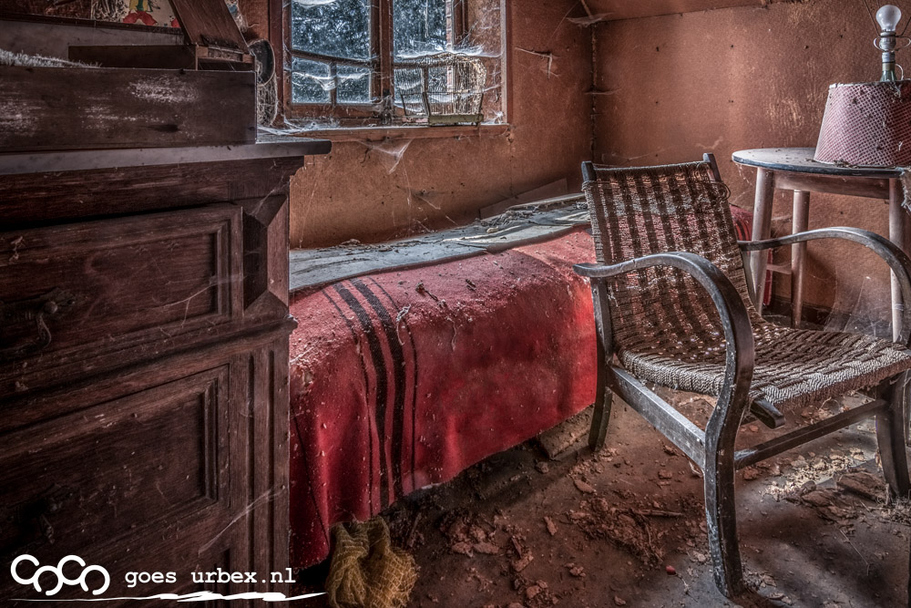 Ook zo'n schattig huis, met vele kamertjes waar t bij sommige ook aarde donker waren en helaas een lamp een tikkeltje moest helpen om in de foto licht te krijgen. Nog nooit heb ik zoveel webben gezien in een huis als bij deze, en aangezien het ook nog eens spinnentijd was, stond ik echt niet lekker hier in dit huisje, vooral boven was het erg. Gek genoeg geen levende spin gezien.....ha ha. Zeer de moeite waard geweest, want vooral de woonkamer was een lust voor het oog. Er stond een prachtig gevelkacheltje in de woonkamer met mooie meubeltjes er om heen, heel huiselijk en sfeervol.
