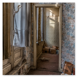 Dit was een groot pand bij een bouwput, doch midden in een woonwijk. Het was duidelijk dat ze dit pand gingen opknappen, aangezien er een grote hijskraan bij stond. Het huis was aardig leeg, maar hier en daar stonden er nog wat meubeltjes en zelfs één kamer lag afgeladen vol met doosjes waar sleutels in zaten, vandaar de naam 'mansion of the locksmith'. De afgebladderde verf aan de muren zorgde voor een heerlijke decay-achtige sfeer. In een ander kamertje zat een duif opgesloten, die continue tegen het raam op vloog, arm beessie, ik heb m dus ook gevangen en buiten losgelaten, heerlijk gevoel om ook op zo'n dag een goede daad te verrichten!