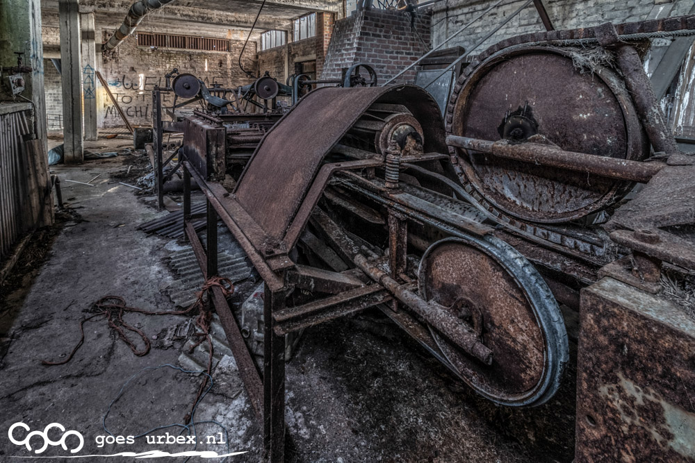 Een klein compact fabriekje, wat nog best een klimpartij was om daar binnen te komen. Binnen stond een lange roestige machine die werd aangedreven door lange riemen. Geen idee waar deze machine voor ingezet werd maar het was een leuk ding om te zien en uiteraard om te fotograferen.