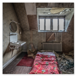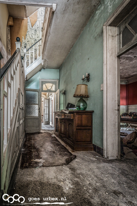 Een heerlijk groot huis vol met spullen, lekker vertoeven dus hier! Achteraf enorme mazzel gehad dat we hier binnen kwamen en gewoon via de hoofdingang, ha haaaaaa. Brutalen hebben de halve wereld! Een gedeelte van het huis was in slechte staat, 1 kamer was de vloer al helemaal verzakt zelfs. Beneden in de kelder die ongelooflijk groot was, was een ruimte te vinden met aan 3 muren rekken met dossiers, heel apart en indrukwekkend om te zien, en zelfs een wijnkelder, met nog een paar flesjes waarvan de meeste leeg waren. Een pre op de urbexlijst!